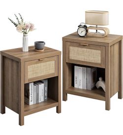 Set of 2 - Farmhouse Night Stand with Drawer and Storage Shelf - Boho Bedside Table End Side Table f$90Murrieta, CA