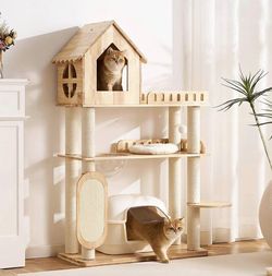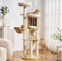 Solid Wood Cat Tree for Indoor Cats Large Adult, 61.5in Tall Cat Tower with Sisal Scratching Posts,$95Temecula, CA