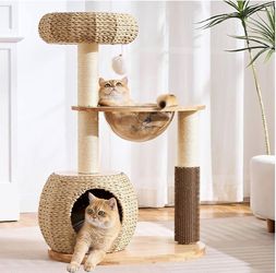 Natural Wood Cat Tree for Indoor Cats Large Adult, 38in H Cat Tree Tower with Scratching Posts, Hand$65Temecula, CA