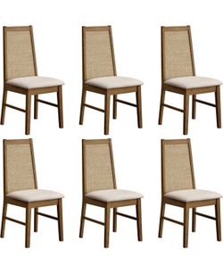 Set of 6 - Solid Wood Dining Room Chairs with Rattan Decor High Back, Farmhouse Upholstered Kitchen$215Temecula, CA