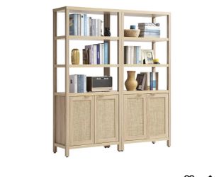Bookshelf 5 Tier Book Shelf Rattan Boho 71" Tall Bookcase with Doors Storage Shelves Large Bookshelv$310Temecula, CA
