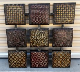 Set of nine decorative metal wall art panels with embossed geometric and organic patterns.$50Roseville, CA