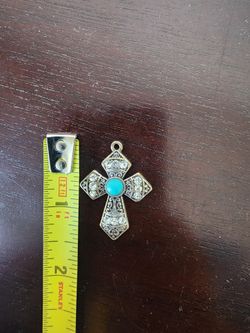 Ornate Western Cross Pendant - Turquoise & Rhinestone Accents$10Plano, TX