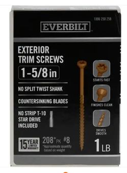 #8 x 1-5/8 in. Star Drive Trim Head Exterior Wood Screws 1 lb.-Box (208-Piece)$12Los Angeles, CA