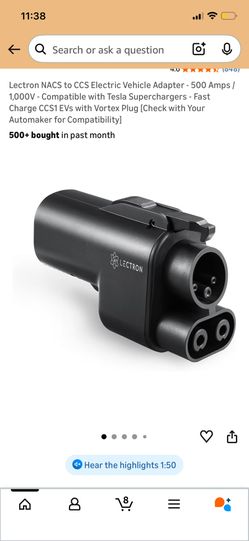 Lectron NACS to CCS Electric Vehicle Adapter - 500 Amps / 1,000V - Compatible with Tesla Superchargers - Fast Charge CCS1 EVs with Vortex Plug [Check $160Bakersfield, CA