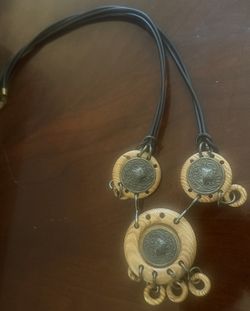 Wood & Brass Cameo Chain Belt / Stars Inspired Medallion Chain And Leather Tie Belt$75Bainbridge Island, WA