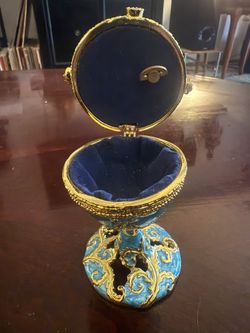 Vintage Cloisonne Musical Ring Box, Faberge Inspired Egg, Brass Music Box, Mother's Day Gift, Blue Enamel Egg, Jeweled Egg Wind Up Music Box$300Bainbridge Island, WA