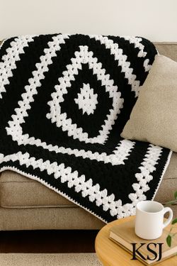 Handmade Black & White Crochet Blanket – Cozy, Plush, One-of-a-Kind$65Bunnlevel, NC