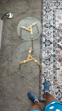Modern Glass Top Center Table with Wooden Geometric Base – Set of 2$120Chicago, IL