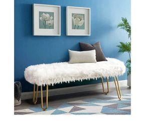 White Faux Fur Ottoman Bench Upholstered Furry Entryway Bedroom Bench with Gold Metal Legs, Modern Contemporary Long Bench Ottoman Hair Foot Rest Stoo$70Virginia Beach, VA
