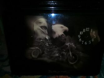 Vtg "Fly Like An Eagle Bikers Clock On Wood Glazed W Motorcycles$18Henderson, NV