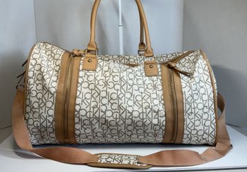 Calvin Klein Travel Weekender Duffle Bag in an eggshell and beige monogram.$110Santa Ana, CA