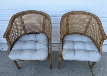 Pair of Vintage Faux Bamboo and cane barrel-back chairs with light gray cushions$65Berkeley, CA