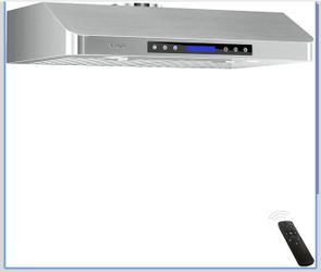 30 inches Under Cabinet Range Hood, 900 CFM Stainless Steel Kitchen Chimney Vent, 4 Speed Touch Screen Control With Remote 2Pcs 3W LED lights Dishwash$230Ontario, CA