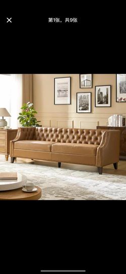 C/Ingvar Transitional 84 in. Straight Arm Leather Rectangle Sofa in Camel $800Ontario, CA