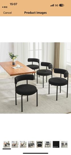 Boucle Dining Chairs Set of 4, Mid Century Modern Dining Room Chairs with Barrel Backrest, Upholstered Black Kitchen Chairs for Dining Room, Restauran$250Ontario, CA