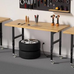 60" Solid Wood Work Bench with Wheels, Work Table with Power Outlet, Heavy-Duty Workbench, 3000 LBS Load Capacity Portable Workbench for Garage, Works$120Corona, CA