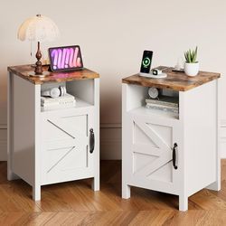 Farmhouse Nightstands with Charging Station, End Tables Set of 2 with Barn Door, Sofa Side Table with Storage Space for Bedroom, Living Room (White)$120Corona, CA