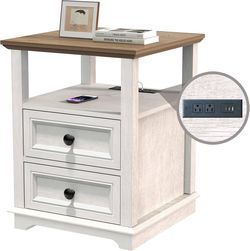 End Table with Fast USB C Charging Station, 18" Wide Tall Sofa Side Table with 2 Drawers, Large Storage Rustic Wood Square Storage Cabinet for Living $80Corona, CA