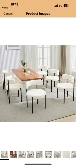 Boucle Dining Chairs Set of 6, Mid Century Modern Dining Room Chairs with Barrel Backrest, Upholstered White Kitchen Chairs for Dining Room, Restauran$350Ontario, CA