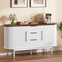 55'' Fluted Buffet Cabinet with 3 Large Drawers, Fluted Sideboard Buffet Storage Cabinet with Adjustable Shelf & Sliding Door, Modern Coffee Bar for K$120Corona, CA