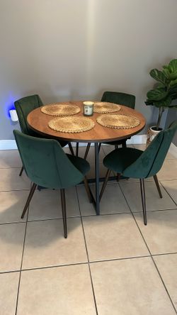 Round 42″ Solid Wood Dining Table + 4 Green Velvet Chairs – Excellent Condition$400Miami, FL