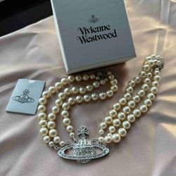 Authentic Vivienne Westwood Orb Triple Pearl Choker Necklace