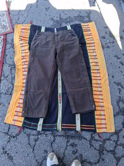 dark brown Carhartt insulated duck canvas bib overalls with ankle-to-thigh leg zippers. $90San Marcos, CA