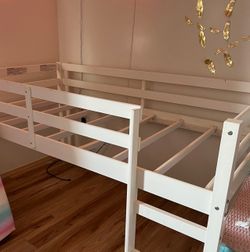 BED TWIN White Rubber Wood Frame Twin Platform Loft Bed with USED Mattress not included $77$77Perris, CA