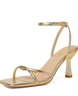 GENSHUO Square Toe Sandals Women Lace up Chunky High Heels Strappy Sandals Block Heeled Ankle Wrap Homecoming Wedding Dress Shoes Gold Size 9.5$36Hacienda Heights, CA