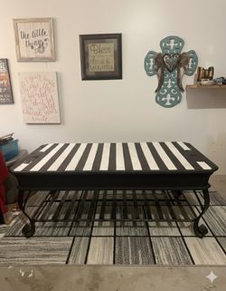 Custom Black & White Striped Coffee Table - Wrought Iron Base$200Willis, TX