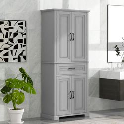 Bathroom Storage Cabinet with Doors and Drawer, Multiple Storage Space, Adjustable Shelf, Grey$160Montclair, CA