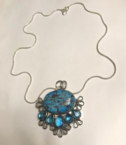 Turquoise Blue Topaz Stamped 925 Sterling Silver Necklace$98Holly, MI