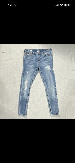 True Religion Mid Rise Super Skinny Blue Denim Jeans Medium Wash Distressed$20Renton, WA