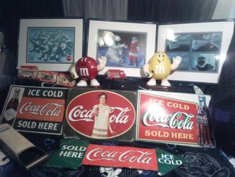 COCA COLA COLLECTIBLE COCA COLA FRAMED 3D ART W/ COA, , VINTAGE DIE CAST METAL BUDWEISER TRUCKS, VINTAGE COCAL COLA SIGNS, M&M CANDY DISPENSERS$10Whitewater, CA