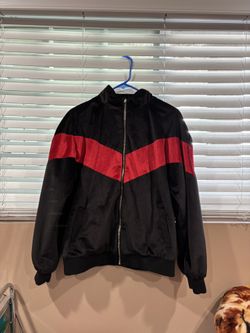 Forever 21 Velour Chevron Zip Up Track Jacket Black and Red Women’s Size Medium$10Downey, CA