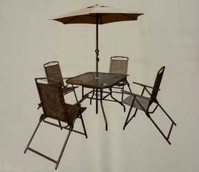 New 6 piece patio set, Four fold chair , table And umbrella $150Peoria, AZ