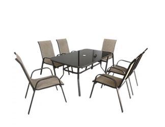 New 7 Pieces Patio Furniture Set, Cambria Sling Rectangle Table With 6 Chairs $300Peoria, AZ