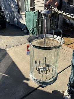 Restoration Hardware Style Glass Lantern Chandelier – Brushed Nickel, 6-Light Foyer Pendant$275Elmhurst, IL