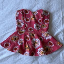 🌸 Flirty Floral Strapless Peplum Top – Pink Daisy Print - Size Small - Worn Only Few Times$32Los Angeles, CA