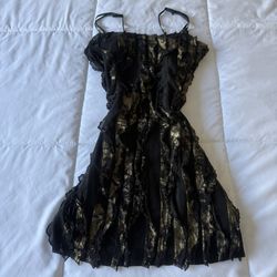 FOREVER 21 Twenty One Black & Gold Ruffled Mini Dress – Sheer Layered Evening Dress (Size S)$42Los Angeles, CA