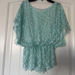β¨ Mint Green Fairycore Lace Peplum Blouse β Cottagecore Ruffle Top, Romantic Boho Lace Shirt, Ethereal Spring Summer Top β¨$45Los Angeles, CA