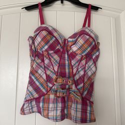 Pink Plaid Corset Bustier Top – Y2K Structured Boned Crop w/ Buckle Detail – Size S$45Los Angeles, CA