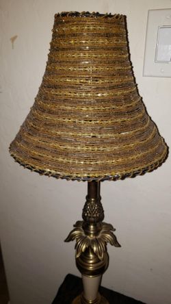 VINTAGE HIGH QUALITY BRONZE GOLD AMBER GLASS SEED BEAD WOVEN BEADED LAMP SHADE TABLE DECOR $40San Tan Valley, AZ