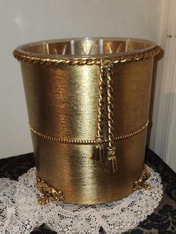 VINTAGE ORNATE 24K GOLD PLATED MATSON ORMOLU HOLLYWOOD REGENCY FOOTED GARBAGE CAN TRASH BIN$20San Tan Valley, AZ