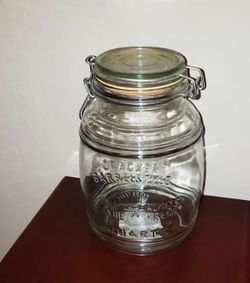 LARGE VINTAGE AIRTIGHT CRACKER BARREL STYLE 4 QUART GLASS MASON JAR CANISTER CONTAINER WITH BUILT-IN LID$15San Tan Valley, AZ