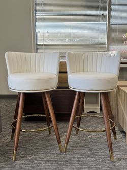 Set of 2🔥Modern Swivel Bar Stools – 27.7” Counter Height, Upholstered Armless Chairs with Footrest & Wooden Legs, Stylish and comfortable, these roun$139Buford, GA