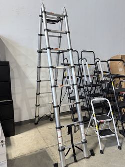 🔥16.5 Ft Telescoping A-Frame Ladder – Compact Aluminum Extension Ladder with 330 lb Capacity, Stabilizer Bar, Tool Platform, and Portable Design for $88Buford, GA