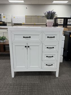 36 inch Bathroom Vanity with Sink Combo, White Bathroom Cabinet with Drawers. The top two drawers are decorative, and the bottom three drawers are fun$299Buford, GA