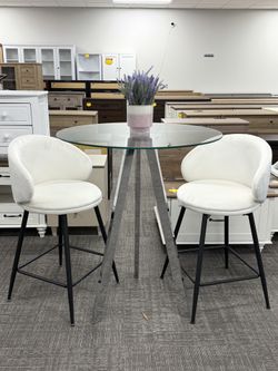 3-Piece Set, 37.4” H Round Bar Table + 26” Counter Height Swivel Bar Stools. 💰165$$165Sugar Hill, GA